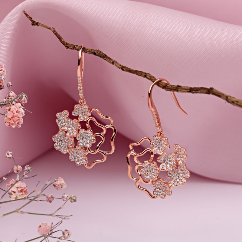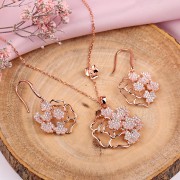 Une ravissante parure en argent sterling 925 plaqué or rouge avec des inserts de zircones scintillantes ! La combinaison de ces pierres enchanteresses donne au produit un aspect unique et captive le regard. Un tel ensemble mettra en valeur la tendresse, la féminité et le charme de sa maîtresse !