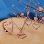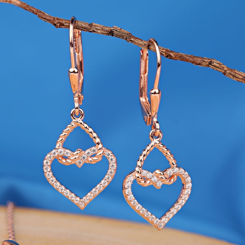 Une ravissante parure en argent sterling 925 plaqué or rouge avec des inserts de zircones scintillantes ! La combinaison de ces pierres enchanteresses donne au produit un aspect unique et captive le regard. Un tel ensemble mettra en valeur la tendresse, la féminité et le charme de sa maîtresse !