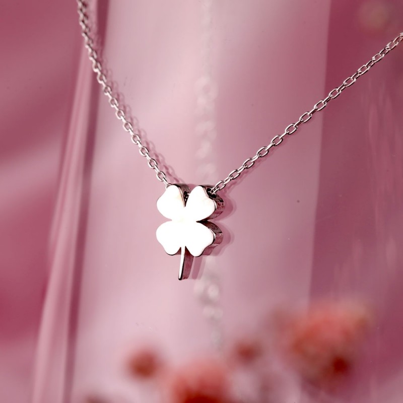 Collier en argent sterling 925 avec pendentif volumétrique décoratif – un curseur en forme de feuille de trèfle. Tissage chaîne - ancre, taille diamant.