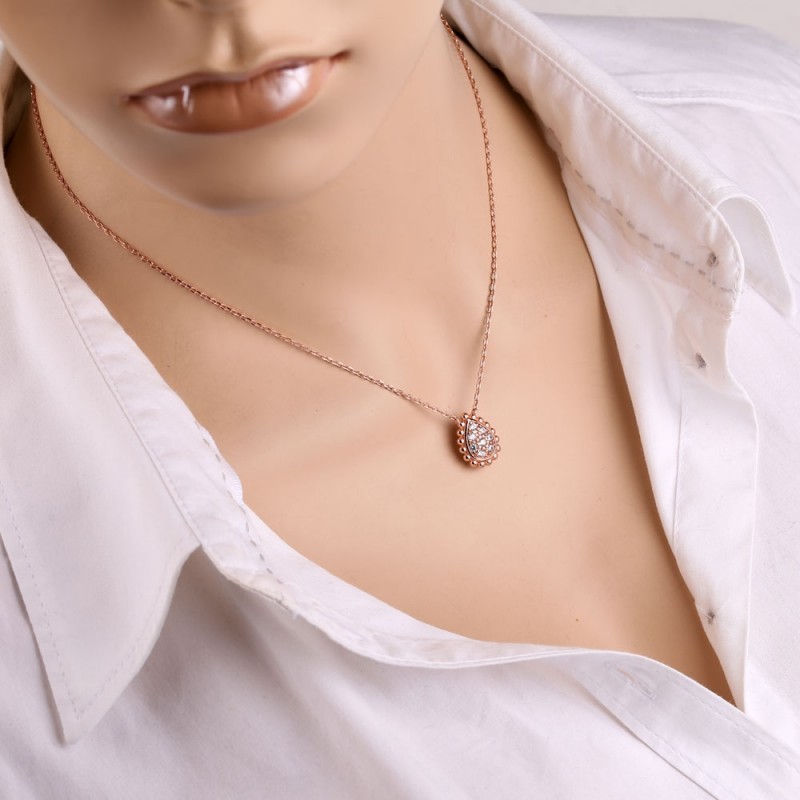 Un collier ravissant et délicat avec de ravissantes pierres de zircone cubiques dans un magnifique cadre en argent sterling 925 plaqué or rose. Une belle occasion de se faire plaisir ou d'offrir à l'être aimé un cadeau qui mettra en valeur la tendresse, le charme et la beauté naturelle ! Tresse chaîne d'ancre taille diamant.