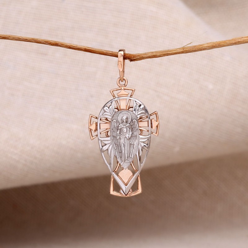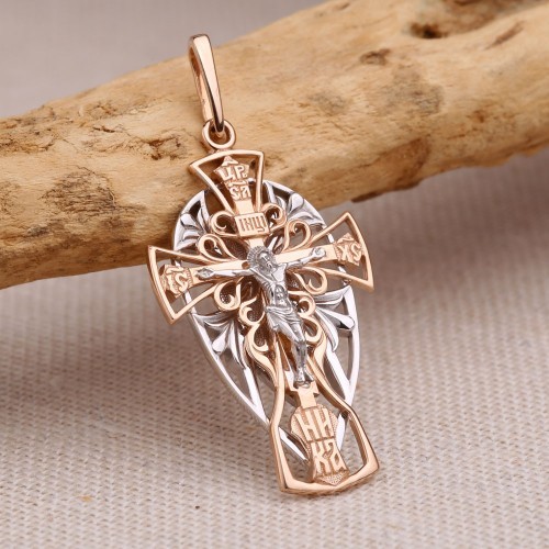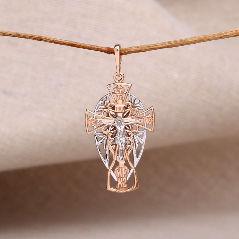 Pendentif croix en or russe 585 échantillon, bicolore
