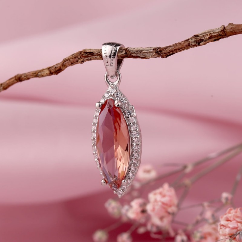 Charmant pendentif en argent avec un insert en belle sultanite et zircone étincelante. Argent sterling 925. Le complément romantique parfait à votre look !