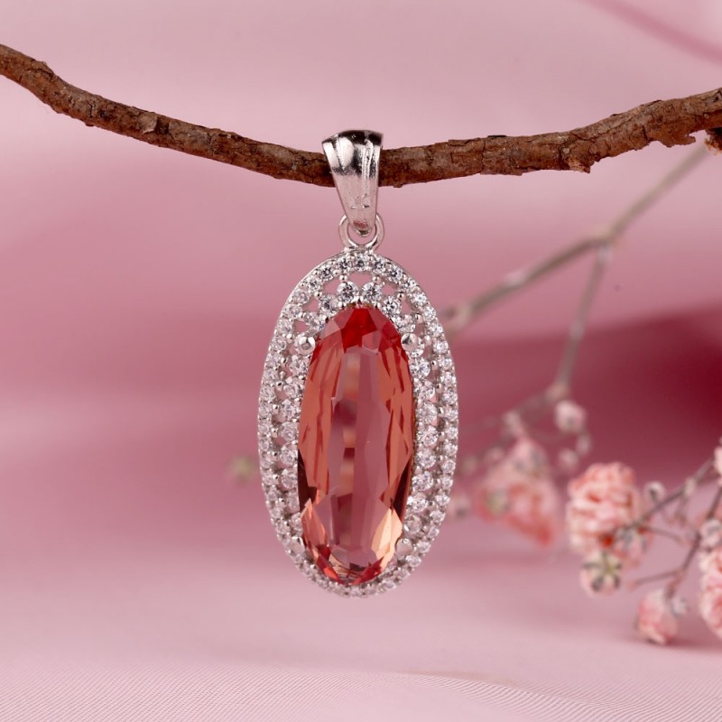 Charmant pendentif en argent avec un insert en belle sultanite et zircone étincelante. Argent sterling 925. Le complément romantique parfait à votre look !