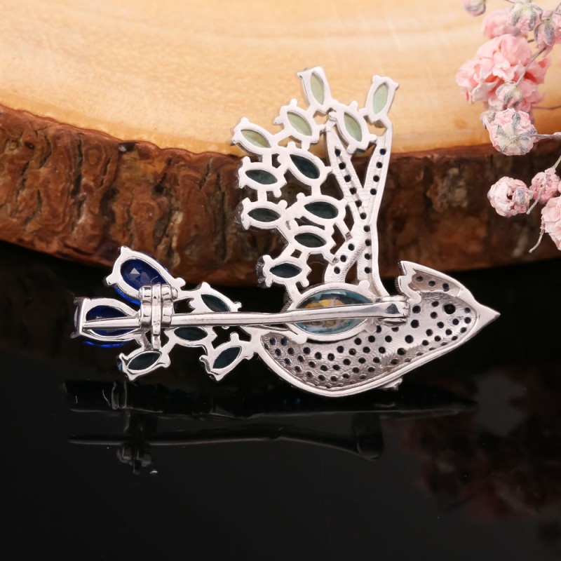 Charmante broche en argent 925 rhodié, ornée de zircones scintillantes et d'alpanite. Les broches en argent avec zircons cubiques soulignent non seulement la beauté et la grâce de leur propriétaire, mais constituent également un merveilleux ajout à n'importe quelle tenue. Cette décoration a pour mission de transmettre les sentiments les plus brillants et les plus élevés à son propriétaire !