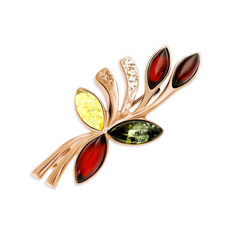 Une magnifique broche en argent 925 plaqué or ornée d'ambre, avec cet étonnant "morceau de soleil", vous ravira et vous enchantera grâce à sa beauté !