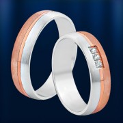 Bague bicolore en or rouge (mat) et blanc 585 avec diamants (3 x 0,02 ct)