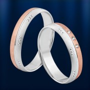 Bague bicolore en or rouge et blanc 585° (mat/brillant) avec diamants (3 x 0,02 ct)