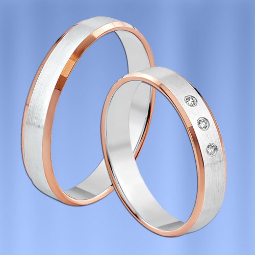 Bague bicolore en or rouge et blanc 585° (mat/brillant) avec diamants (2 x 0,005 ct)