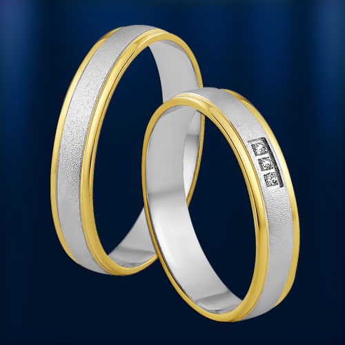 Bague bicolore en or jaune/blanc 585° (mat/brillant) avec diamants (3 x 0,005 ct)