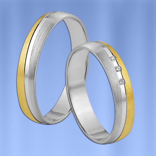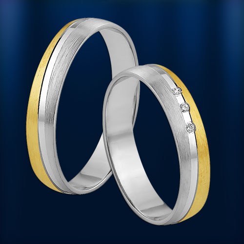 Bague bicolore en or jaune/blanc 585° (mat/brillant) avec diamants (3 x 0,005 ct)