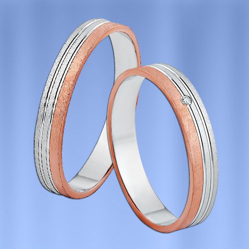 Bague bicolore en or rouge et blanc 585° (mat/brillant) avec diamant (1 x 0,005 ct)
