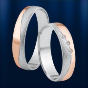 Bague bicolore en or rouge et blanc 585° (mat/brillant) avec diamants (3 x 0,005 ct)