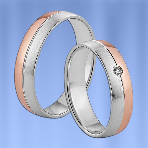 Bague bicolore en or rouge et blanc 585° (mat/brillant) avec diamant (1 x 0,02 ct)