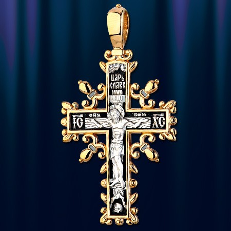 Pendant croix en argent 925 ° d'or - 999 °. Longueur avec un œillet environ.