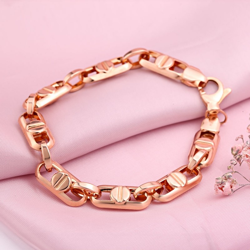 Les bracelets en or rose sont un bon choix.L'or est beau, élégant, chic et cher. Les produits en or créent l'accent nécessaire dans l'image et attirent l'attention sur la richesse et le luxe des accessoires. La valeur de l'or rouge pour les fabricants russes réside dans sa solidité, sa résistance aux charges et sa durabilité. Ces avantages vous permettent de créer des bijoux ajourés légers sans craindre que le matériau ne perde rapidement sa forme ou ne soit gravé.Les bijoux en matériau rouge ont fière allure même s'ils ne sont pas instruits par des pierres précieuses. De tels produits conviennent à tout type de peau, décorent une femme de tout âge et donnent une apparence de sophistication et d'élégance. Les bijoux en or sont considérés comme les plus sûrs car ils provoquent très rarement des allergies.