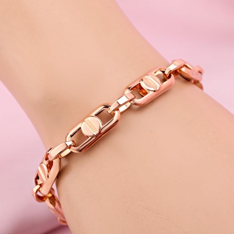 Bracelet élégant en or rouge 585 ! Une façon imaginative de tisser des ancres ! Une occasion unique de mettre en valeur la féminité et l'élégance des mains des femmes.