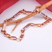Ce bracelet expressif est confectionné à partir d'une combinaison sophistiquée d'or rouge et blanc et présente une tresse combinée qui combine des éléments de la tresse d'ancre et de la tresse Figaro. L'alternance de maillons longs et courts confère au bijou un aspect dynamique et architectural.