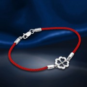 Bracelet en cordon textile rouge avec fermoir en argent et insert en forme de trèfle en argent 925. Plaqué rhodium !