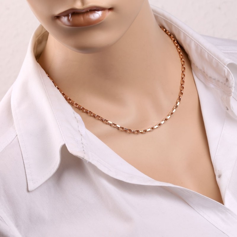 L'excellente chaîne/bracelet est fabriqué en or rouge 14 carats classique à l'aide de technologies avancées spéciales, ce qui permet, malgré l'apparence de volume, d'atteindre un poids relativement faible et donc un coût comparable. Ce produit mettra en valeur votre grande sophistication et votre profond sens du style ! Variété à la mode de tissage d'ancres avec taille diamant.