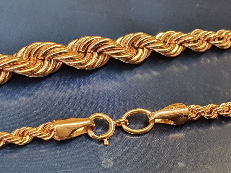 Bracelet en or de chaîne en or en or rouge 585 cordon. Chain et / ou bracelet élégant et féminin en or rouge de 14 karat! Le produit a l'air riche et attire les yeux enthousiastes des autres en scintillants et scintillants au soleil.