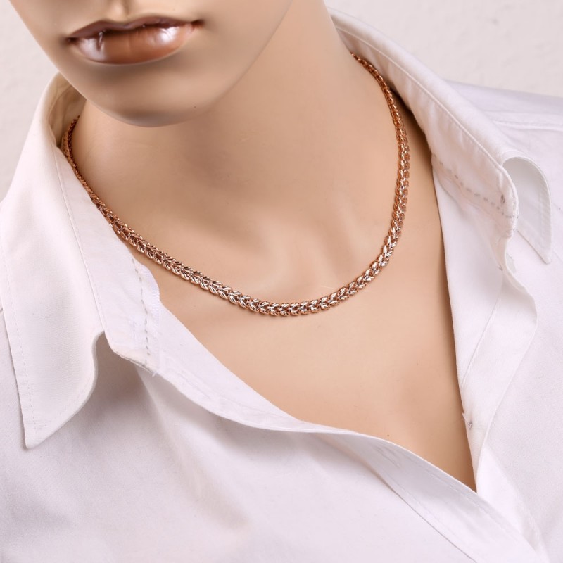 Une chaîne en or blanc/rouge 585. Les maillons de la chaîne sont traités avec une taille diamant, brillent parfaitement et scintillent aux rayons de lumière !