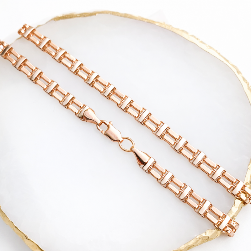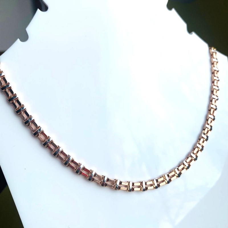 Chaîne en or russe 585. Chaîne en or 585 rouge et blanc. Tresse double ancre à maillons polis