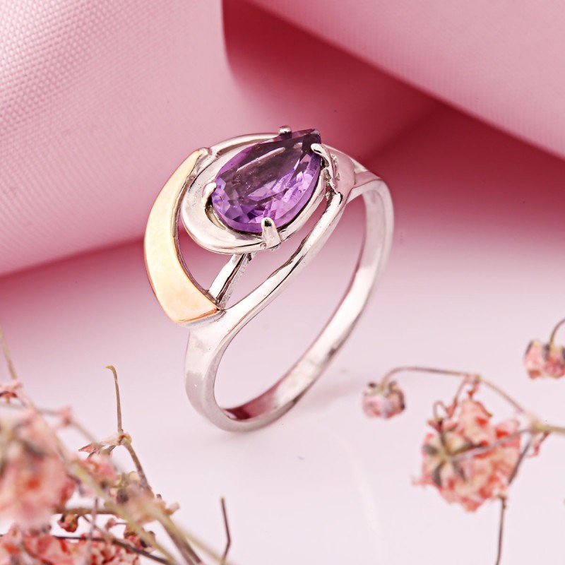 Anneau d'argent avec de l'or en Allemagne Achetez de l'améthyste. Anneau élégant en argent 925, décoré d'or et d'améthyste! Rhodium -plated! L'anneau soulignera parfaitement la sensibilité, le charme et le naturel de sa beauté et attireront l'attention sur la féminité de vos mains.