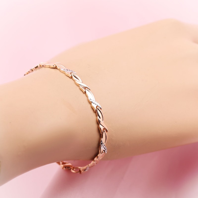 Bracelet d'or femmes russe or 585 ° Bicolor. Le bracelet gracieux et volumineux fait de 585 or blanc et or rouge avec une coupe de diamant étincelante. L'intérieur du bracelet est lisse avec une surface miroir. Les supports en or sont en train de régler l'accent nécessaire dans l'image et attirent l'attention sur la richesse et le luxe des accessoires, car l'or est beau, élégant, chic et cher. Convient à la fois une femme solide et une jeune femme.