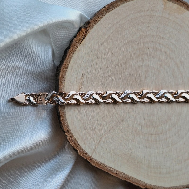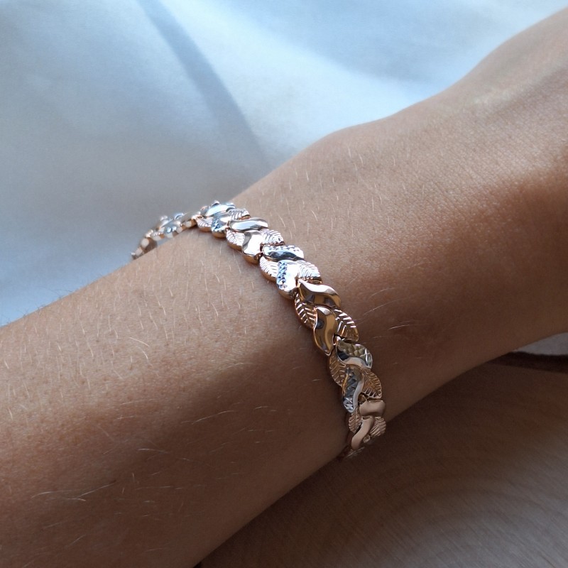 Bracelet en or Or russe 585 Bicolor Excellent bracelet en or rouge classique de la norme 585 avec des accents d'or blanc avec taille diamant. Une merveilleuse décoration pour votre poignet. Ce produit met en valeur la sophistication et un fort sens du style !