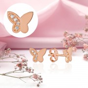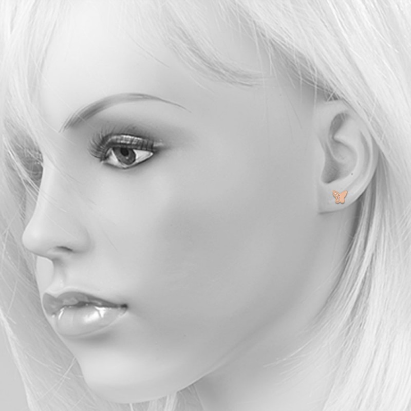 Charmantes boucles d'oreilles clous féminines en or rouge 14 carats avec inserts de fianites scintillantes ! Le style, le goût, l'élégance et la festivité de l'image sont parfaitement mis en valeur !