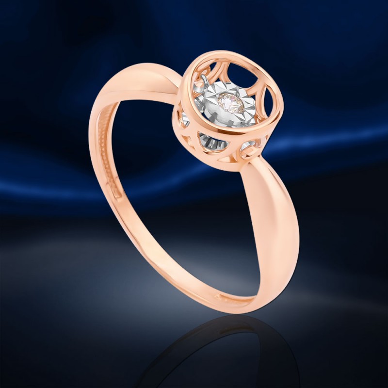 Une charmante bague en or rouge russe échantillon 585 avec 1 brillant 0,029 5/6A 57(H)