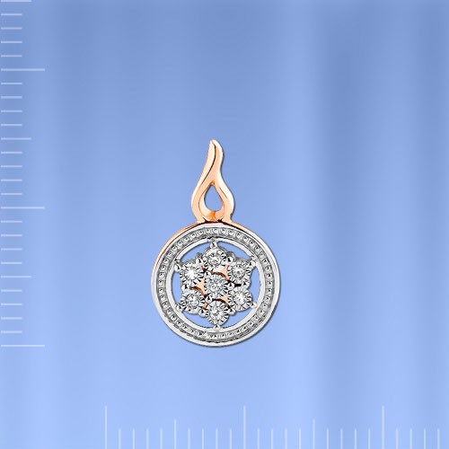 Pendentif en or russe 585° avec 7 taille brillant diamants ¢ 1,0 mm 0,027 ct 2/3A kr -17 . Longueur avec œillet env. 15,0 mm. Largeur : environ 8,0 mm