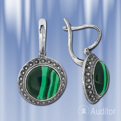 Prstenovi uši izrađeni od pocrnjelog srebra 925 s malahitom.
