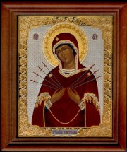 Na ikoni Majke Božje Semistrelnaya, Presvyataya prikazana je Majka Božja, probodena sa sedam strelica: četiri s lijeve strane i tri s desne strane. Napisano je na riječima proroštva svetog pravednog Simeona, koje su bile izrečene u Jeruzalemskom hramu četrdeseti dan nakon Roshdestve Christov: «Se, ovo leži na padu i na ustanku mnogih u Izraelu i u podložnici. razmjene, a vi Oružje će ići u dušu.