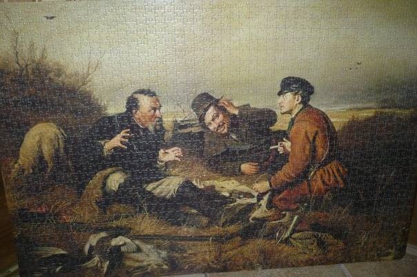 Zaplet zagonetke temelji se na reprodukciji slike "Lovci na odmoru" - slici ruskog umjetnika Vasilija Grigorjeviča Perova, naslikanoj 1871. godine i koja pripada kasnom razdoblju umjetnikova rada.