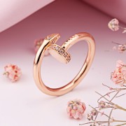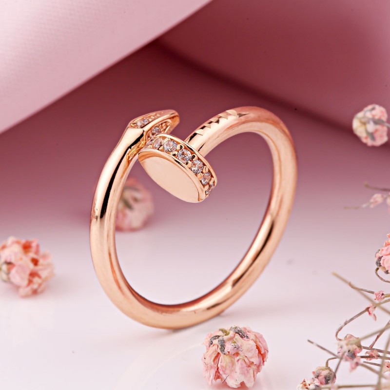 Ženski prsten Zlatni prsten 585 cirkonija. Prsten od crvenog zlata 585 u stiliziranom obliku nokta - izražajan izraz modernog dizajna nakita u kojem jednostavan oblik postaje karakterističan vrhunac. Nježno zakrivljena linija elegantno se omotava oko prsta i daje osjećaj tečnog pokreta i lakoće.