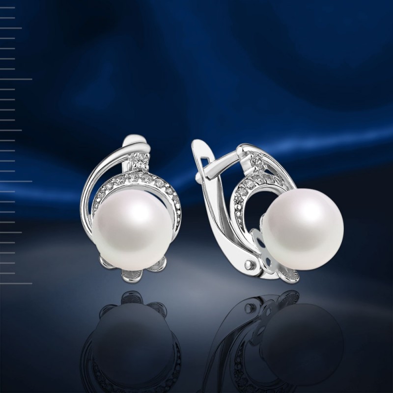 Prekrasne naušnice od 925 srebra, sa cirkonima i biserima. Obloženo rodijom!