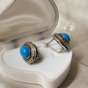 Prekrasne naušnice od crnjenog srebra probe 925 sa umetnutim tirkiznim kamenčićem.