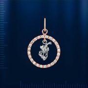 Rak " od ruskog zlata 585° sa 24 fijanita ¢ 1,0 mm. Bicolor. Visina s ušicom cca 22,0 mm. Širina cca 15,0 mm