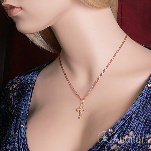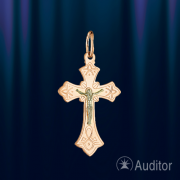 Keresztező medál a keresztre feszített orosz arany 585 -ös Németországban, ortodox. A Krisztus figura fehéraranyból készül, 585, a kereszt vörös aranyból készül, 585, vésett mintával. A kereszt hátulján egy "megmentett és megőrzött" védő ima gravírozott. A kereszt tetején van egy gyűrű egy zsinórhoz vagy lánchoz. Nem karcol, ha visel.