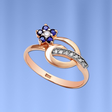 Gyűrű vörös/fehér aranyból 585°, gyémántokkal, zafírral. 585°-os vörösaranyból készült gyűrű fehérarany díszítéssel, mely különleges módon hangsúlyozza a gyémántok szépségét!