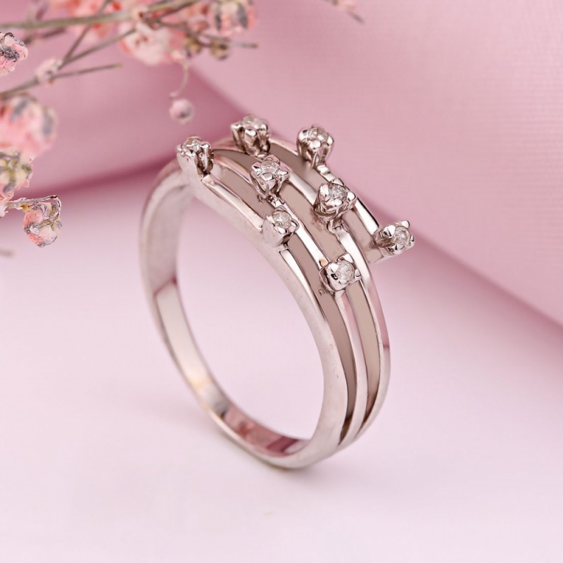 Gyűrű 585-ös fehéraranyból, gyémántokkal. Elegáns gyűrű 14 karátos fehéraranyból, gyémánt betéttel. Csodálatos fehérarany ajándék egy szeretett személynek és lehetőség, hogy hangsúlyozd egyediségedet!