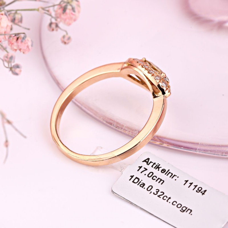 Betét: 16 db gyémánt 0,12 ct.; 1 db gyémánt marquise konyak szín 9,0 x 4,0 mm