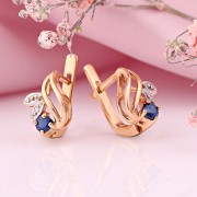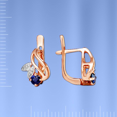 Fülbevaló vörös aranyból, gyémántból, zafírból. Bájos fülbevaló 18 karátos rózsaszín aranyból, fehérarany díszítéssel, amelyek tökéletesen kiemelik a gyémántok és zafírok ellenállhatatlanságát - luxus ajándék szeretteinek. Múlnak az évek, változik a divat, de az arany fülbevalók még mindig lenyűgöznek frissességükkel és szépségükkel.