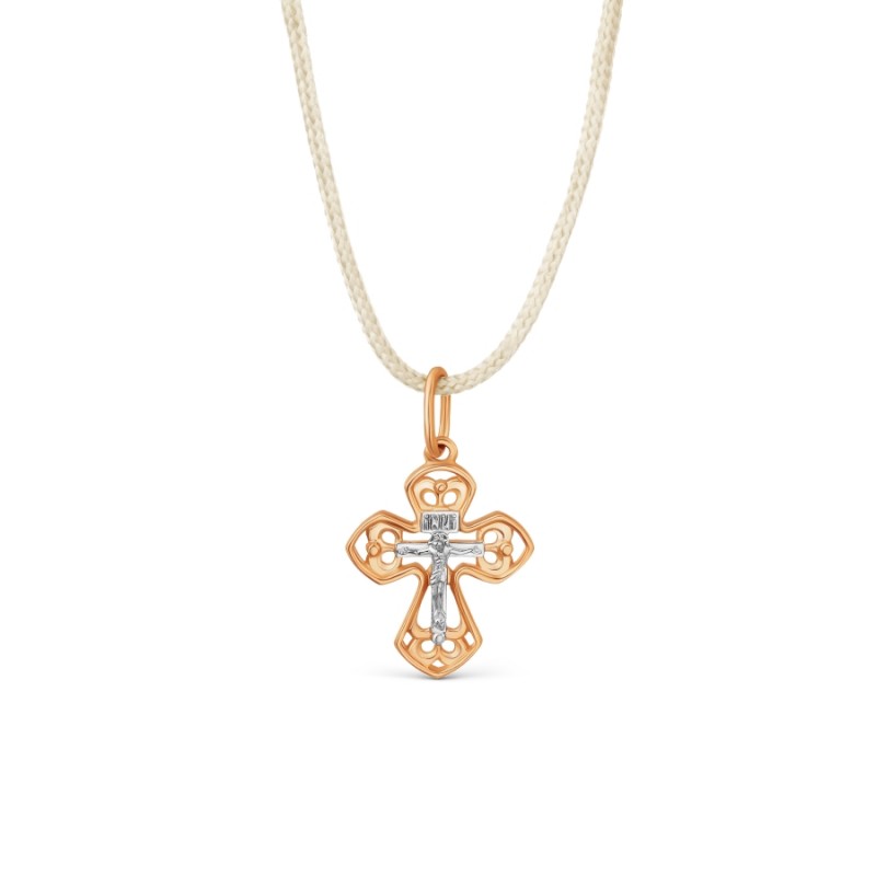 Kereszt medál orosz aranyból 585°, kétszínű