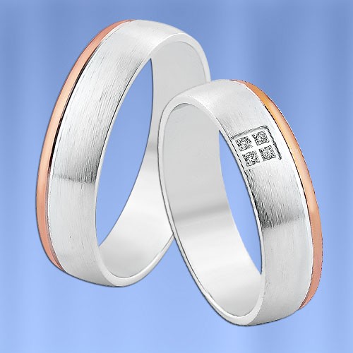 Kéttónusú gyűrű vörös és fehér (matt) aranyból 585 gyémántokkal (4 x 0,005 ct). Gyűrű szélessége kb. 5,5 mm