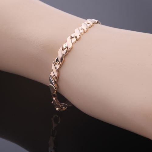 Arany karkötő nők vörös arany 585. A kecses és terjedelmes karkötő 585 vörös aranyból készült. A karkötő belseje sima, tükörfelülettel. Az aranyból készült zárójelek beállítják a szükséges akcentust, és felhívják a figyelmet a kiegészítők gazdagságára és luxusára, mert az arany gyönyörű, elegáns, elegáns és drága. Megfelel egy szilárd hölgynek és egy fiatal nőnek.