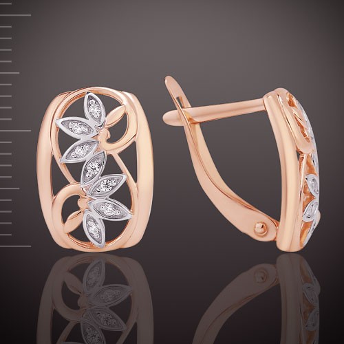 Fülbevaló orosz vörös/fehér aranyból 585° 14 fianittal kb. ¢ 1,0 mm