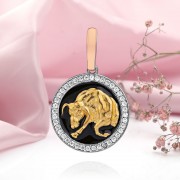 Kerek „Bika” medál 925 ezüstből, aranyozással és cirkónia betétekkel. A medál tetején láncgyűrű található. Az aranyozott minta különösen kifejezőnek tűnik a fekete zománc háttér előtt. Ródiummal bevonva!
