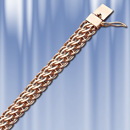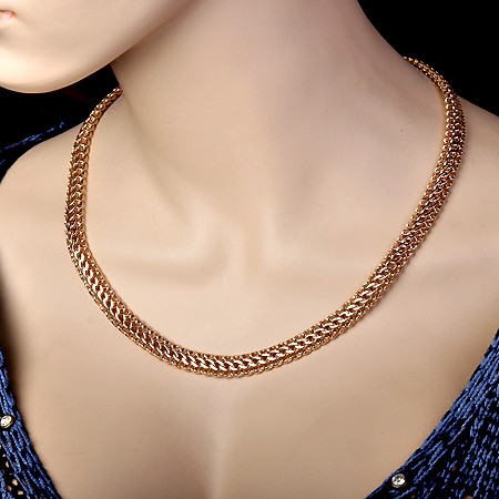 Tömör arany lánc, kézzel készített, osztrák járdaszegélylánc (amerikai) megbízható csúszókapoccsal, további biztonsági kapoccsal, 585 karátos orosz vörös aranyból.